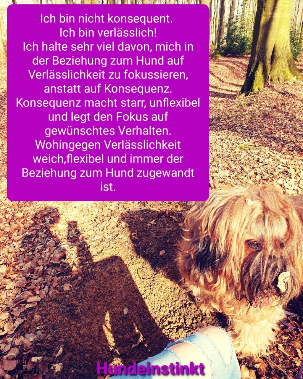 Immer mehr Menschen sprechen davon, mit dem Nervensystem ihres Hundes zu arbeiten. Auf den ersten Blick klingt das achtsam und modern. Doch wenn man genauer hinschaut, geht es oft gar nicht um echte Regulation, sondern darum, dass der Hund sich anpasst – ruhig, kontrolliert, „funktional“. Und genau das hat nichts mit Selbst‑ oder Co‑Regulation zu tun. Selbstregulation ist nicht Runterregulation. Aber genau das wird inzwischen in der Hundeszene oft verkauft: Immer nur entspannen, zur Ruhe kommen, beruhigen. Ein paar Übungen, etwas „Runterfahren“ – und angeblich ist das Leben gut. Ein bisschen selber ruhiger atmen und den Hund in den Schwitzkasten nehmen – alles ist fein. Kein Witz: Das habe ich letztens tatsächlich gesehen. Eine Hundetrainerin hat einen Aussie mit beiden Händen seitlich im Nacken gepackt. Als ich gefragt habe, was das bitte bewirken soll, hat sie mir netterweise zurückgeschrieben und erklärt, das sei eine Übung zur Co‑Regulation. Das wäre ganz toll bei hibbeligen Hunden. Ich war dann auch nett, habe mich für die Antwort bedankt und nichts mehr dazu geschrieben. Der Hund sah überhaupt nicht entspannt aus. Der Rücken war zusammengezogen, das ganze Gesicht angespannt und zusammengekniffen. Er wusste ganz genau, dass er aus dieser Situation nur noch mit einem sehr hohen Aggressionslevel rauskommt – das heißt: Er hätte beißen müssen, um sich zu befreien. Aber: Er ist nicht mehr nach vorne gegangen (meiner Ansicht nach hat er resigniert) beim Anblick anderer Hunde. Dann gab es eine schöne Musik zu dem Video – und alle sind glücklich. Alle außer der Hund. So funktioniert das nicht, Leute. Auch wenn es oft so klingt, als würdet ihr „am Nervensystem eures Hundes“ arbeiten – in Wahrheit geht es häufig darum, dass der Hund funktioniert. Aber echte Co‑Regulation setzt eine sichere Bindung voraus. Diese entsteht nicht durch Technik, sondern durch ehrliche Beziehung, durch Vorleben und innere Präsenz. Es geht nicht nur darum, wie ich mit meinem Hund umgehe, sondern auch darum, wie ich mit und in meiner Umwelt agiere.* Ich beschäftige mich seit vielen Jahren mit dem Thema und hatte das große Glück – oder einfach die Zeit –, mich wirklich damit auseinanderzusetzen. Nicht nur mit Wissen über das Nervensystem, sondern so, dass mein Körper es wirklich integriert hat. Das bedeutet, sich selbst zu spüren, wahrzunehmen, zu beobachten – und dadurch bewusster zu handeln statt unreflektiert zu reagieren. Die ganz kurz gefasste Erkenntnis daraus ist: Selbstregulation heißt: Ich kann schwingen. Der Sympathikus ist nicht nur eine Stressachse. Er ist auch die Achse für Freude, Lust, Neugier, Exploration, Lebendigkeit. Der Parasympathikus sagt nicht: „Hey, super, neuer Tag, was starten wir heute, Frauchen oder Herrchen!?“ – dafür brauchen wir den Sympathikus. Aus dieser Zeit hat sich für mich ein unantastbarer Wert entwickelt, und der heißt: Lebendigkeit möchte gelebt – und erHALTen werden. Das ist mir wirklich ein Herzensanliegen – ganz besonders im Zusammenleben mit unseren Hunden. Denn wir müssen uns immer wieder klarmachen: Unsere Hunde leben bei uns in Gefangenschaft. Aber ich kann diese „Gefangenschaft“ so gestalten, dass der Hund das kaum merkt – weil es ihm gut geht. Weil wir gemeinsam gut miteinander schwingen. Weil der Hund mit allem, was er mitbringt, gesehen wird und sich sicher fühlt. In einer funktionalen und ehrlichen Beziehung weiß jeder, wer der andere ist und welche Bedürfnisse er hat. Wenn das gelingt, bleibt die Beziehung auch unter Stress im Stresstoleranzfenster – ohne dass jemand körperliche oder psychische Schäden davonträgt. Und das heißt nicht, dass mein Hund und ich den ganzen Tag nur entspannt sind – ganz im Gegenteil: Wir sind lebendig, echt und verbunden. Oder wie ich immer zu Menschen sage: Du musst lernen, mit dieser Energie – der natürlichen Lebendigkeit und dem Temperament deines Hundes – zu tanzen. Herzlichst Bora von Hundeinstinkt 💛
