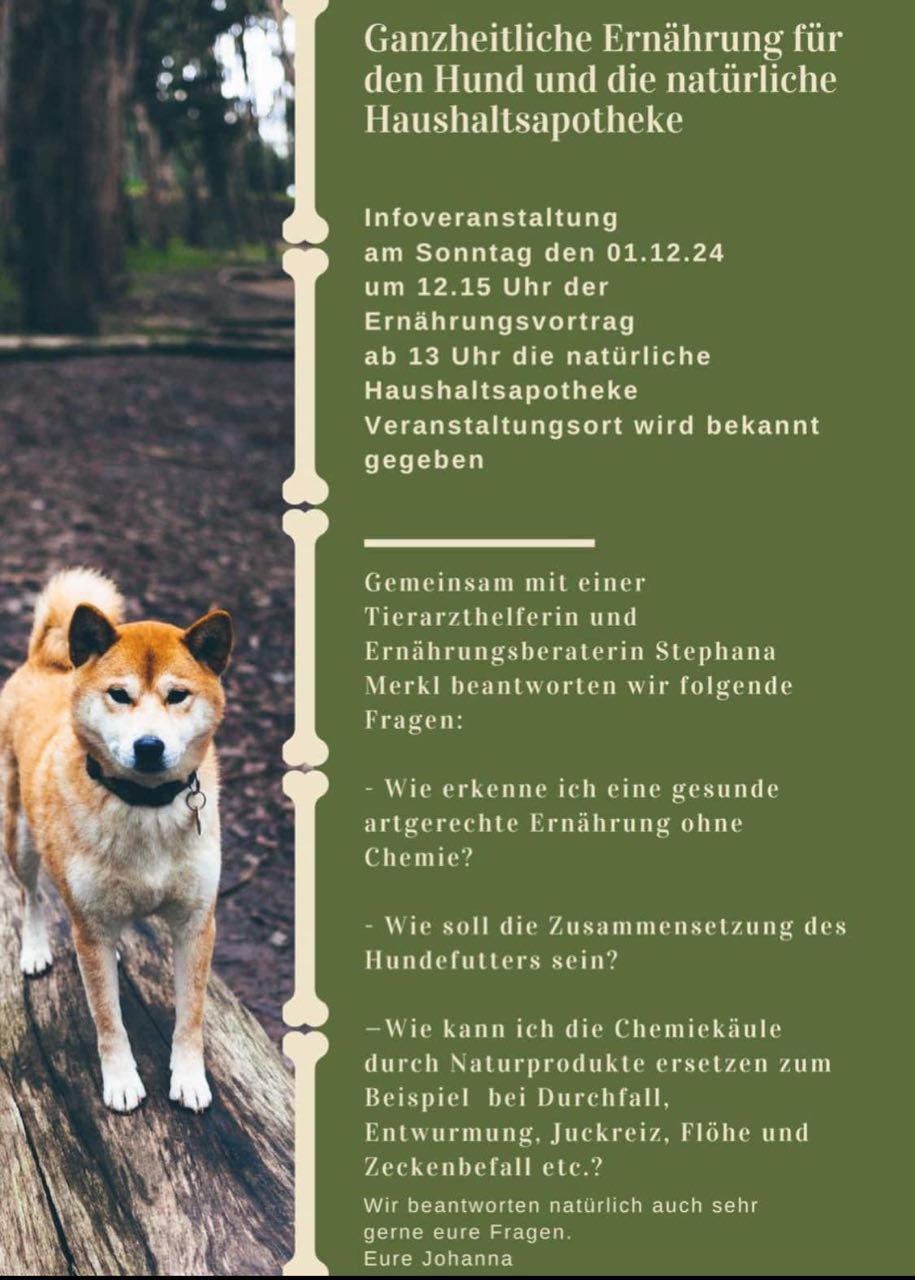 .....für angehende Hundehalter Sie überlegen, einen Hund zu adoptieren und möchten, dass Sie und Ihr Hund von Anfang an ein gutes Team werden? Das Seminar richtet sich an angehende Hundehalter:innen. Nach vier Theorieterminen in der VHS stimmt Ihr Dozent mit Ihnen einen weiteren Praxistermin in einem Tierheim (evtl. auch an einem Samstag mit ca. 90 Minuten) ab. Kursinhalte: - Allgemeines Wissen über Hundehaltung in der heutigen Gesellschaft, Herkunft, Auswahl und artgerechte Haltung / - Angemessenes und rücksichtsvolles Auftreten mit Hunden / Rechte und Pflichten von Hundehaltern sowie - Haftungsfragen und Versicherungsschutz / Gesetze, Verordnungen und Bestimmungen zur Hundehaltung / - Erste Hilfe beim Hund / - Verständigung zwischen Mensch und Hund / Wesen des Hundes (Konstitution, angeborenes und erlerntes Verhalten) / - Sinne des Hundes / Körpersprache (Ausdrucksverhalten) des Hundes / Erziehung des Hundes mehr Infos unter: VHS Herzo genaurach - Herbst/Winterprogramm 2025 wann : 1. Do., 06.11.2025 19:45 - 21:15 Uhr 2. Do., 13.11.2025 19:45 - 21:15 Uhr 3. Do., 20.11.2025 19:45 - 21:15 Uhr 4. Do., 27.11.2025 19:45 - 21:15 Uhr 5. Praxistermin im Tierheim nach Absprache